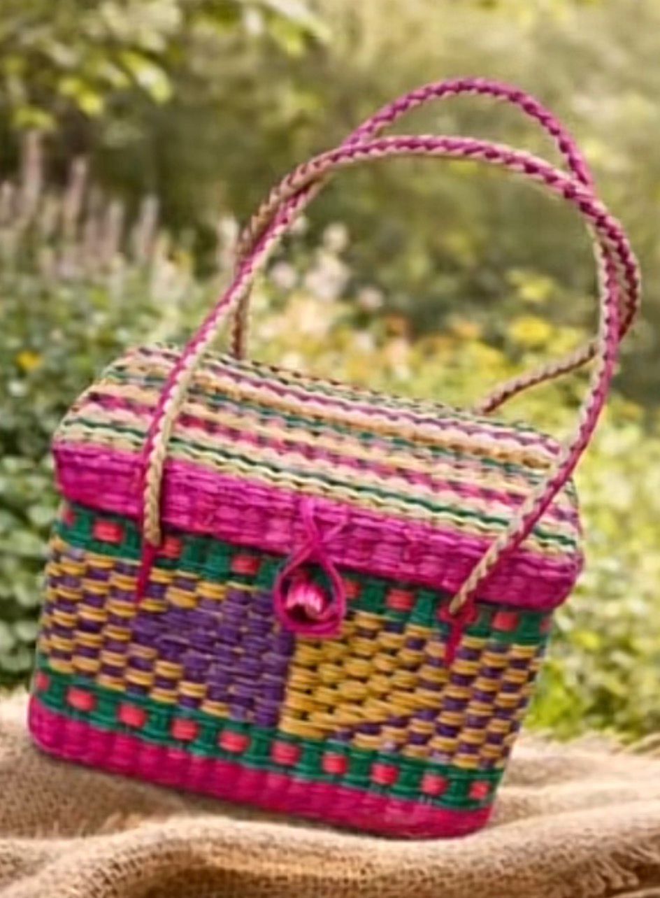 Un bolso artesanal tejido a mano con hermosos colores vibrantes, perfecto para añadir un toque de tradición a tu estilo.