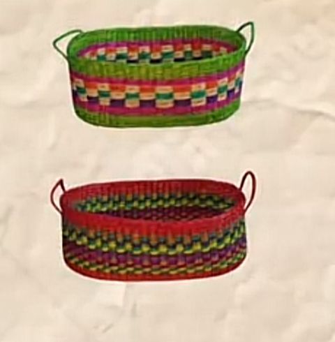 Cesta resistente y funcional, tejida con colores vivos para añadir un toque de naturaleza a tu espacio.